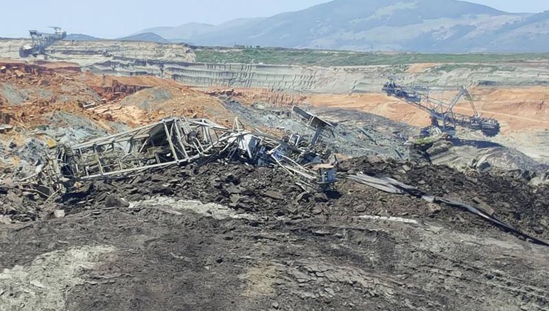αποτέλεσμα να καταστραφούν ολοσχερώς τρεις γιγάντιοι καδοφόροι εκσκαφείς ενώ κινδυνεύει με καταστροφή και ο τέταρτος εκσκαφέας καθώς το φαινόμενο βρίσκεται σε σε πλήρη εξέλιξη.
